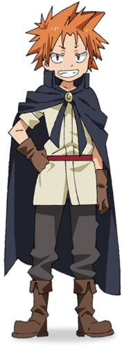 Это молодой мальчик с колючими оранжевыми волосами и черными глазами.